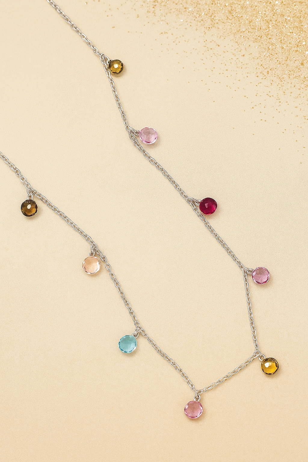 1 Piece 925 Sterling Silver Round 925 sterling silver cable chain Multi Charms Necklace