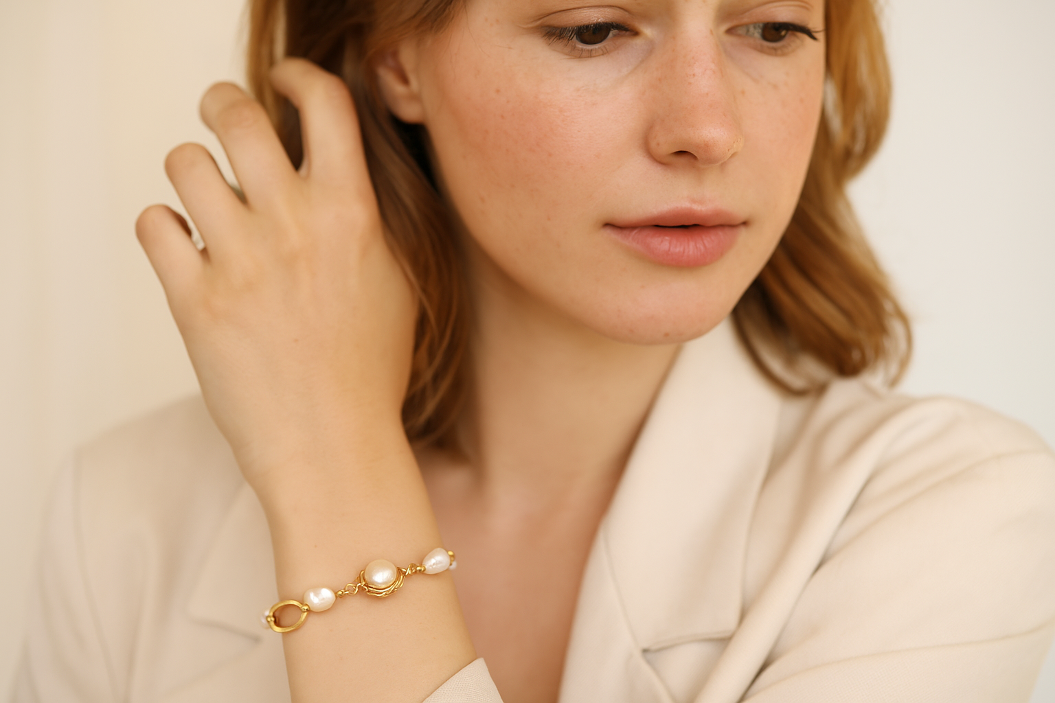 This elegant bracelet features a 925 sterling silver base plated with gold, combining durability with a refined finish. Its hollow geometric design offers a modern, minimalist aesthetic, while the freshwater pearls add a touch of natural sophistication. Perfect for those seeking a subtle yet distinctive accessory that complements both casual and formal attire.