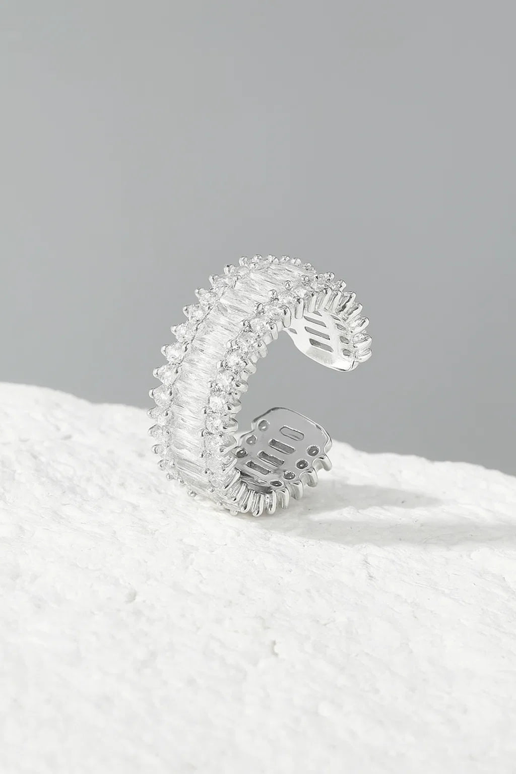 Elevate your style with this sleek open ring featuring a shiny rectangular design crafted from copper and plated in 18K gold. Its bold yet elegant look adds a touch of sophistication to any outfit, while the open design ensures a comfortable fit. Perfect for those who want to make a subtle but striking statement.